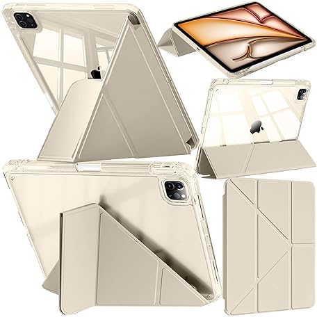 Case Compatible with iPad Air 13 Inch (M3/M2 2025/2024) / iPad Pro 12.9 2022/2021/2020/2018, Clear Back, Supports Pencil Pro/(USB‑C), 6-in-1 Y Fold Stand, Polaris