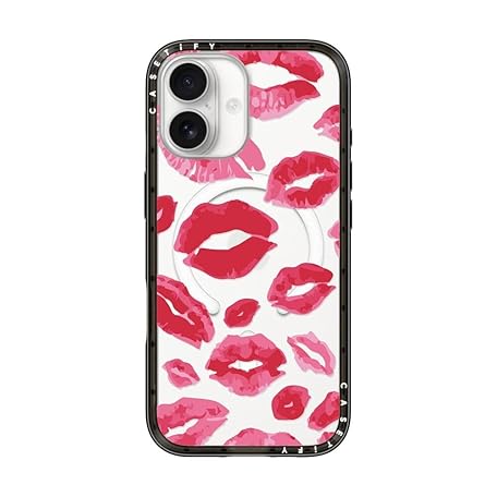 CASETiFY Compact iPhone 17 Case [MagSafe Compatible/Slim/Drop Protection from 4 Feet] - Lipstick Kisses - Transparent Black