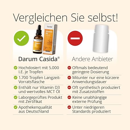 Sản phẩm Casida® Vitamin D3 Drops 5000 IU High Dose Liquid Vitamin D3 Drops Dissolved in High-Quality MCT Oil - From the Pharmacy - 50 ml đang được bán với giá ưu đãi là $26.7268 tại nước Đức.