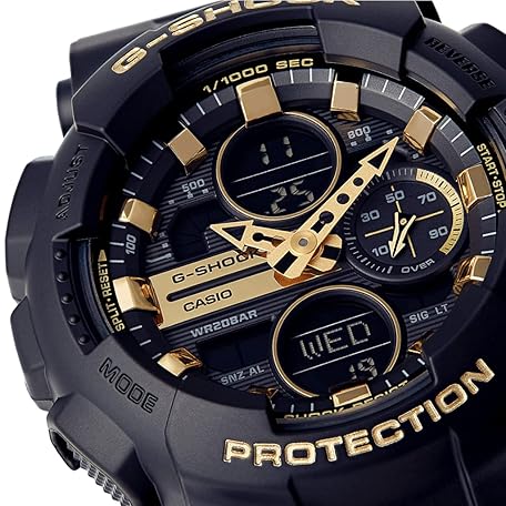 Thông tin sản phẩm Casio GMA-S140M-1AER Unisex Quartz Watch, 49.00 mm Case Size with Black Analogue / Digital Dial and Black Plastic/Resin Strap Strap, black, Stripes