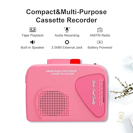 Thông tin sản phẩm Cassette Recorder, AM/FM Radio, Walkmaner Portable Cassette Recorder, Recording to Cassette, Built-in Speaker, Manual Recording - T201 (Pink)