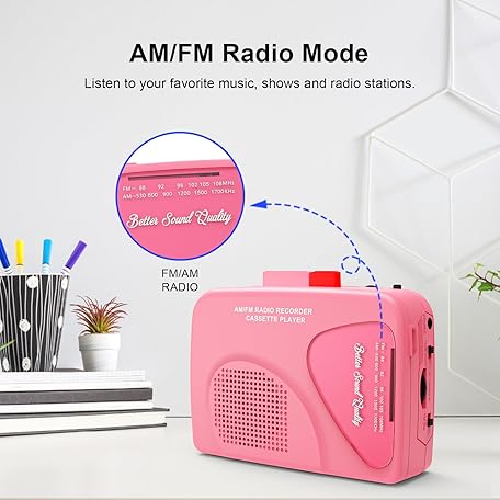 Sản phẩm Cassette Recorder, AM/FM Radio, Walkmaner Portable Cassette Recorder, Recording to Cassette, Built-in Speaker, Manual Recording - T201 (Pink) đang được bán với giá ưu đãi là $30.6181 tại nước Đức.