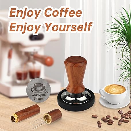 Thông tin sản phẩm Ccshyysm Espresso Tamper Set - 53mm Coffee Tamper for Espresso Machine, Spring Loaded Hand Masher with Stainless Steel Base, Espresso Distribution Tool, Coffee Stirrer, Perfect Espresso Accessory Set