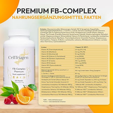 • CellTriagen Premium FB-Complex All-in-One Formula with Proven Garcinia Cambogia Extract - Bitter Orange & Raspberry Fruit to Support Training - 120 Capsules