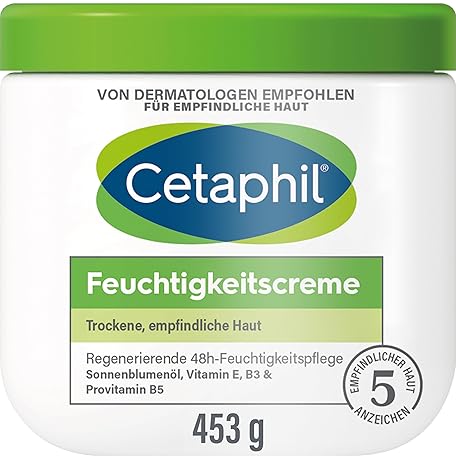 Sản phẩm CETAPHIL Moisturising Cream, 453 g, For Dry, Sensitive Skin, Intensively Moisturises for 48 Hours and Strengthens Resistance, With Vitamin B3, Provitamin B5, Sunflower Oil, Almond Oil, Glycerine đang được bán với giá ưu đãi là $25.7131 tại nước Đức.