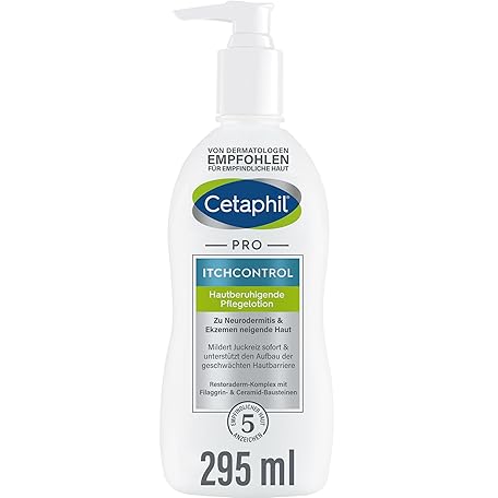 Thương hiệu Cetaphil là cái tên nổi tiếng được rất nhiều khách hàng trên thế giới chọn lựa. Với kiểu dáng đẹp mắt, sang trọng, sản phẩm Cetaphil PRO ItchControl Hautberuhigende Pflegelotion, 295ml, Für zu Neurodermitis & Ekzemen neigende Haut, Lindert juckende, gereizte Haut, Mit Sheabutter, Filaggrin- und Ceramid-Bausteinen  là sự lựa chọn hoàn hảo nếu bạn đang tìm mua một món  cho riêng mình.
