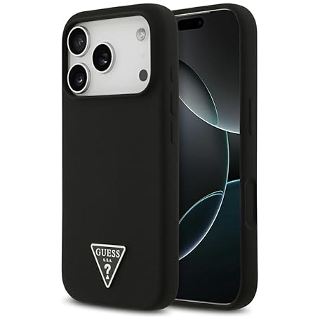 • CG MOBILE Guess Silikon-Dreieck-Logo kompatibel mit MagSafe Hülle für iPhone 17 Pro (Schwarz)