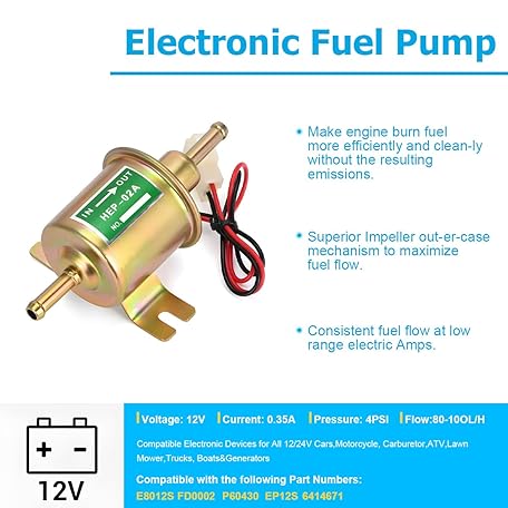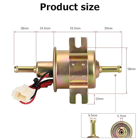 Thông tin sản phẩm CGEAMDY Universal Electric Fuel Pump, 12 V Electric Fuel Pump 3-5 Psi, Fuel Dosing Pump, for Lawnmowers, Carburettors, Petrol, Diesel (Gold)