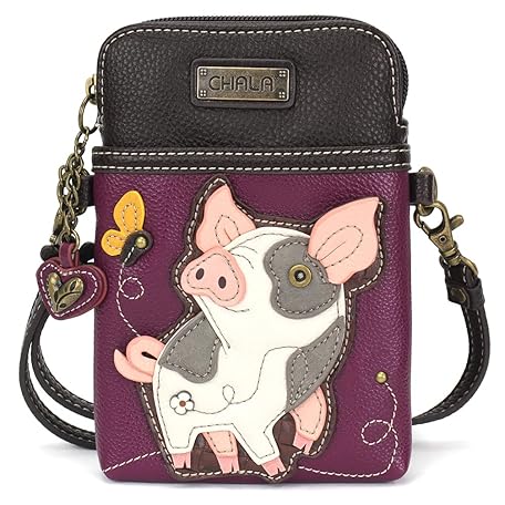 CHALA Handy-Umhängetasche für Damen, PU-Leder, Leinen, mehrfarbig, Handtasche mit verstellbarem Riemen, Spotted Pink Pig - Lila, Einheitsgröße