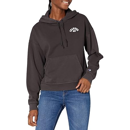 Champion Damen Powerblend Vintage Hoodie Left Chest Graphic Kapuzenpullover, Solar Wash Black, Small