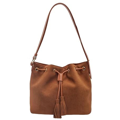CHANGYUE Women's Suede Bucket Bag Adjustable Strap Retro Handbag with Tassels Solid Bag for Work Travel