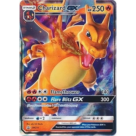 Charizard GX SM211 Pokemon Promo-Karte | Sun & Moon Hidden Fates Promo-Serie | Mit Flammenwerfer & Flare Blitz GX Attacken | Pokemon GX Karte + TitanCards Toploader