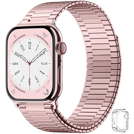Charlam Ersatzarmband Kompatibel mit Apple Watch Armband 41mm 40mm 38mm, Magnet Metall Edelstahl Watch Ersatzband mit Hülle für iWatch SE Series 8 7 6 5 4 3 2 1, Damen Herren, RoséRosa, Patentiert