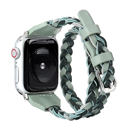 CHARMINGO Lederarmband, doppelt gewickelt, kompatibel mit Apple Watch, 38 mm/40 mm/41 mm, für Damen, Boho-geflochtenes Jaspis-Stein, Uhrenarmband für iWatch-Band-Serie Ultra 10, 9, 8, 7, 6, 5, 4, 3,
