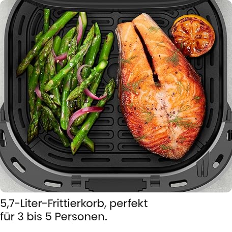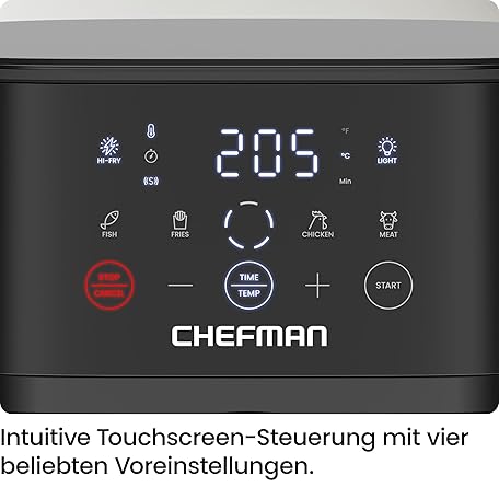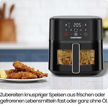 Sản phẩm Chefman Heißluftfritteuse - 5,7 L kompakte Heissluftfritteuse, mit Hi-Fry Technologie, Sichtfenster, Touch Controls, antihaftbeschichtet und spülmaschinenfest - Schwarz đang được bán với giá ưu đãi là $82.1097 tại nước Đức.