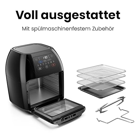 Sản phẩm Chefman Multifunctional Digital Hot Air Fryer + Rotisserie, Dehydrator, Convection, 17 Touch Screen Presets, XL 10L Family Size, Automatic Shut-Off, Large Viewing Window, Black đang được bán với giá ưu đãi là $87.0365 tại nước Đức.
