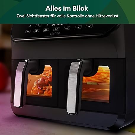 Thông tin sản phẩm CHEFREE Dual Zone AFW20 Hot Air Fryer with Viewing Window, 8L XL Capacity, Double Airfryer, LED Touch Screen, Non-Stick Coating, 8-in-1, Smart and Timer Function, Dishwasher Safe Baskets, Black