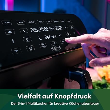 Sản phẩm CHEFREE Dual Zone AFW20 Hot Air Fryer with Viewing Window, 8L XL Capacity, Double Airfryer, LED Touch Screen, Non-Stick Coating, 8-in-1, Smart and Timer Function, Dishwasher Safe Baskets, Black đang được bán với giá ưu đãi là $125.4481 tại nước Đức.