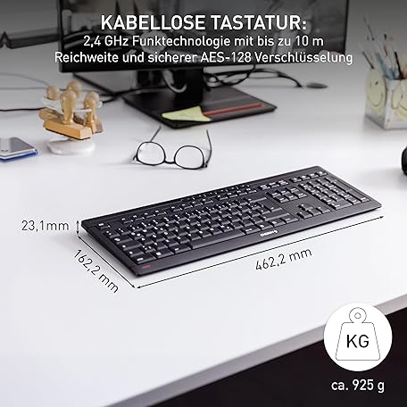 Thông tin sản phẩm CHERRY Stream Wireless Keyboard, German Layout (QWERTZ), 2.4 GHz Radio, Quiet Keys, Flat Design, Battery Operated, Black