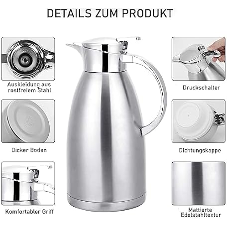 Sản phẩm Chesnia Thermoskanne Isolierkanne, 2.3 L Edelstahl Edelstahl Thermokaraffe, Doppelwand Vakuum Wasserkaraffe, Halten Sie Tee, Milch und Getränke Heiß oder Kalt đang được bán với giá ưu đãi là $31.7081 tại nước Đức.