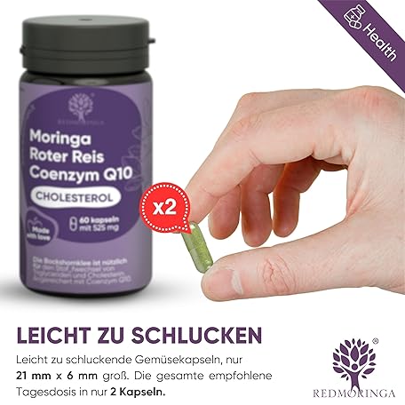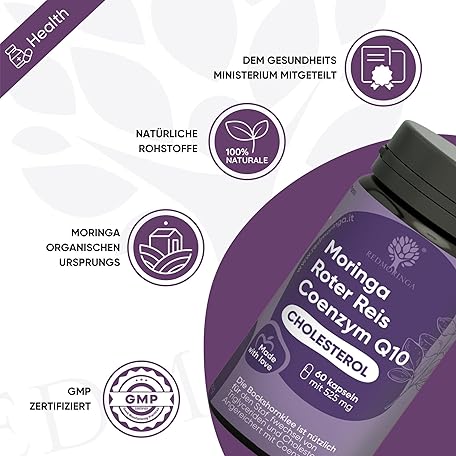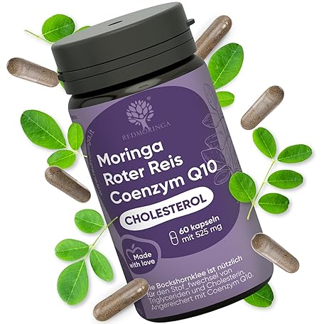 Cholesterol Lowering Capsules Complex 5-in-1 - Red Rice, Coenzyme Q10, Fenugreek, Monacolin K & Bio Moringa - For Healthy Cholesterol & Triglyceride Levels - 60 Capsules