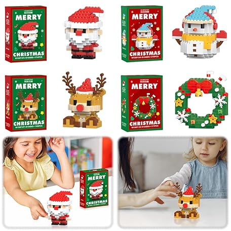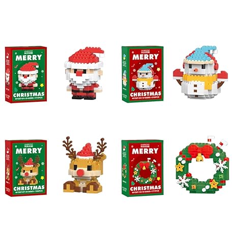 Thông tin sản phẩm Christmas Design Building Blocks Set, 4 Pieces Puzzle Assembling Bricks Animal Figures Building Blocks Set, Mini Buildings Figures Ornaments, DIY Christmas Stocking Stuffers for Kids Party Favours