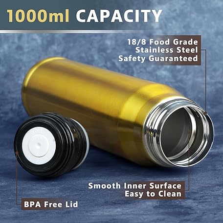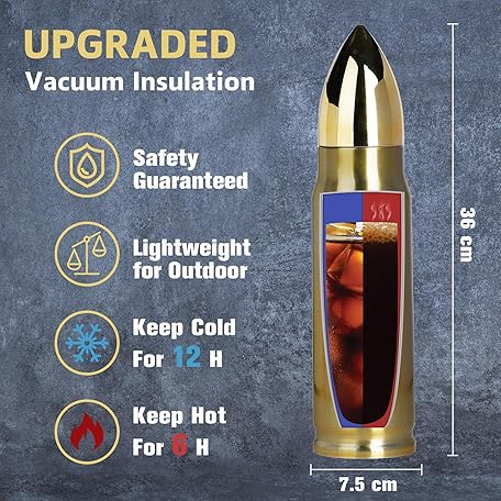 Thông tin sản phẩm Christmas Gifts for Men - Cool Equipment & Costume for Dad - Gifts for Hunter, Hunt, Hunt, Hunter - Stainless Steel Beer, Rum, Whiskey, Vodka, Jägermeister Thermos Flask 1L - Gold