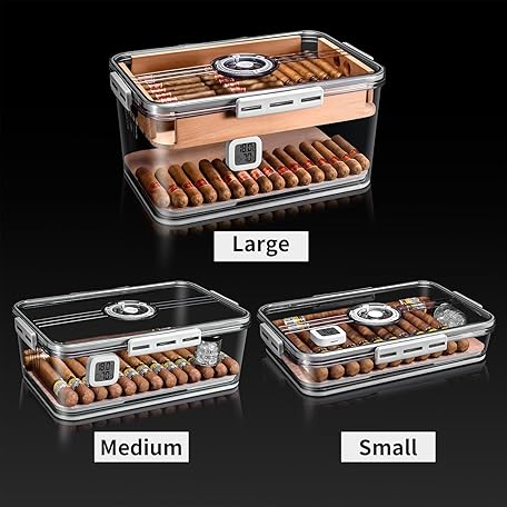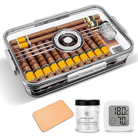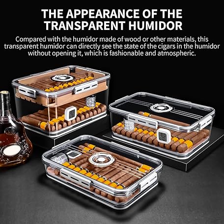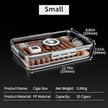 Thông tin sản phẩm CIGARLOONG Cigar Humidor, Built-in Cedar Wood Shelf with Hygrometer and Humidifier, Transparent Acrylic Cigar Storage Box (S (for 20-30 Cigars)
