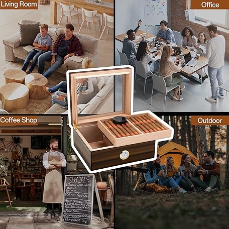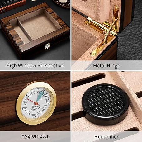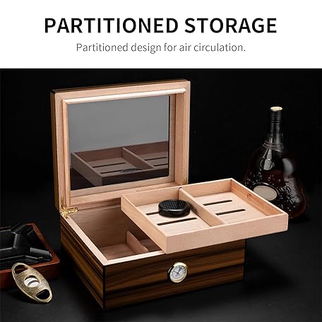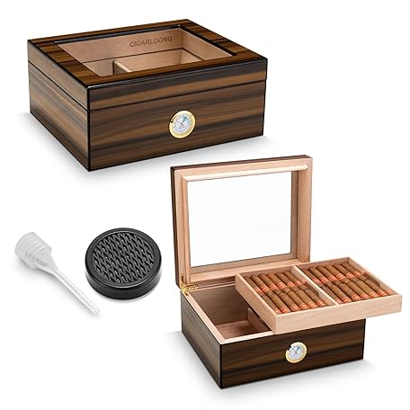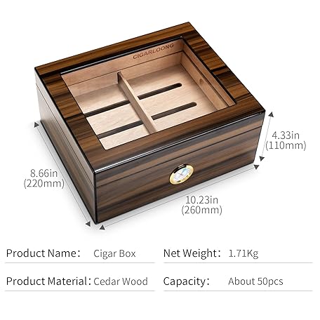 Thông tin sản phẩm CIGARLOONG Cigar Humidor Cedar Wood, Glass Plate, Humidor with Humidifier & Hygrometer, Gifts for Men (M for 50 Cigars)