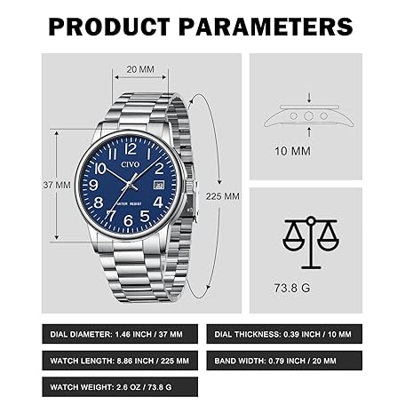 Thương hiệu CIVO là cái tên nổi tiếng được rất nhiều khách hàng trên thế giới chọn lựa. Với kiểu dáng đẹp mắt, sang trọng, sản phẩm CIVO Silver Men's Watch Stainless Steel Watch Men's Analogue Watches Men's Quartz with Date Waterproof Men's Watch Vintage Classic Casual là sự lựa chọn hoàn hảo nếu bạn đang tìm mua một món cho riêng mình.