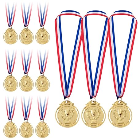 CJBIN 12 Stück Medaillen, Medaille mit Gravur Trophäen Muster, Goldmedaille für Kinder Medaillen Kindergeburtstag Metall Gewinner Medaillen Fussball Medaillen Kinder für Sport Wettkämpfe Partys(Gold)