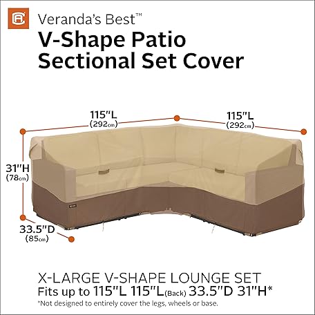Sản phẩm Classic Accessories 56-449-051501-EX Veranda's Best Waterproof V-Shape Sectional, 11.8" x 33.5" x 31", Patio Lounge Set Cover, Earth đang được bán với giá ưu đãi là $242.9937 tại nước Đức.