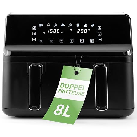 Sản phẩm Clatronic® Double Hot Air Fryer, 8 Litres, XXL Hot Air Fryer, Double Chamber, Frying with Hot Air without Additional Oil, 8 Programmes, Air Fryer, Touchscreen, 2700 Watt, FR 3804 H đang được bán với giá ưu đãi là $128.5219 tại nước Đức.