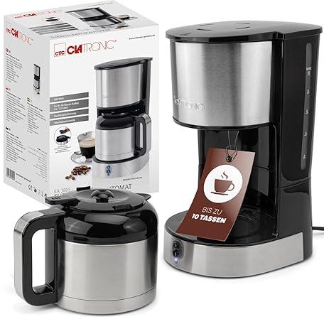 Sản phẩm Clatronic® KA 3805 Coffee Machine with Thermos Flask for 8-10 Cups of Coffee (Approx. 1.2 L) | Filter Coffee Machine Stainless Steel | Double-Walled Thermos Flask | No Temperature Loss | Coffee đang được bán với giá ưu đãi là $48.5922 tại nước Đức.