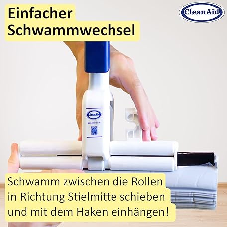 Thông tin sản phẩm CleanAid OneTouch Magic Mop Floor Mop - Absorbent PVA Sponge Mop with Wring Function - Pet Hair Remover, Ideal for All Smooth Surfaces, Tiles, Laminate, Wooden Floors