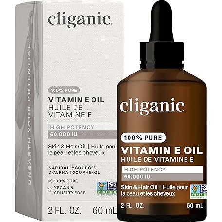 Thông tin sản phẩm Cliganic 100% Pure Vitamin E Oil for Skin, Hair and Face - 60,000 IU (60 ml), Not GMO Verified, Natural D-Alpha Tocopherol