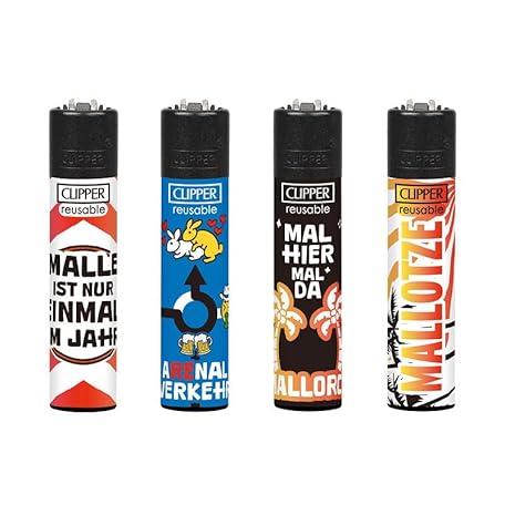 Clipper Lighters, Set of 4, Refillable & Reusable, Colourful Design, Perfect for Travel and Home (Mallotze)