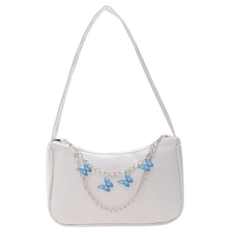 • CNAFGBGG Umhängetasche für Frauen Leder weiße Geldbörse Großkapazität Minimalist Y2K Umhängetasche mit Schmetterlingsketten weich atmungsablößere einfache passende Taschen für Frauen.