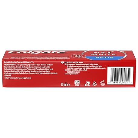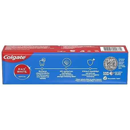 Sản phẩm Colgate Max White Optic Toothpaste 75ml - Removes up to 100% of Surface Discolouration for Instant Teeth Whitening* and a Whiter Smile đang được bán với giá ưu đãi là $5.0031 tại nước Đức.