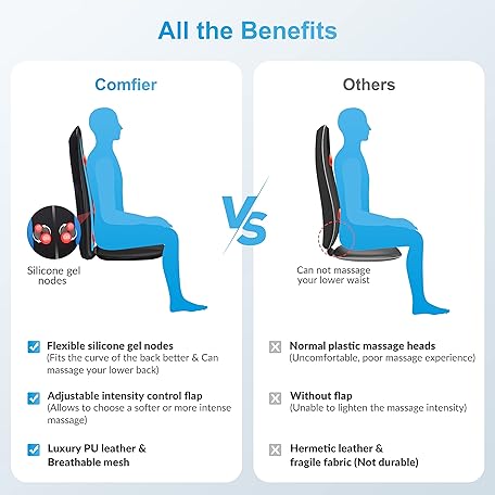 Thông tin sản phẩm Comfier Shiatsu Massagesitzauflage mit Wärme, Shiatsu-Massageauflage Rückenmassagegerät, Entspannung für den gesamten Rücken, eignet sich fürs Büro, Zuhause und überall dort, Geschenke