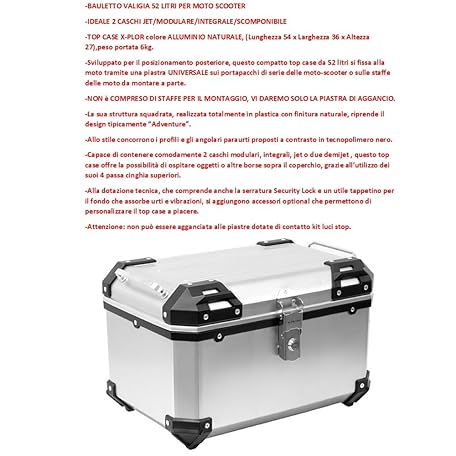 Compatible with Honda Chiocciola @ 125 Topcase 52 Litre Boot Case for Motorcycle/Scooter Complete with Plate + Handle + Mounting Kit for Luggage Racks Ideal for 2 Helmets