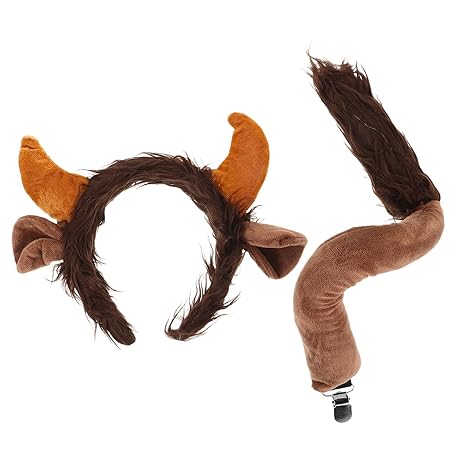 CONGARTENO Kuh Ohren und Schwanz Set Schwarzes Rinderhörner Stirnband Weiches Hautfreundliches Halloween Cosplay Zubehör für Themenpartys und Rollenspiele