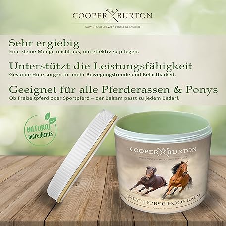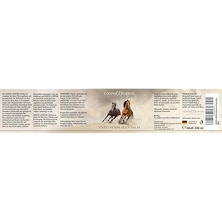 Thương hiệu COOPER & BURTON là cái tên nổi tiếng được rất nhiều khách hàng trên thế giới chọn lựa. Với kiểu dáng đẹp mắt, sang trọng, sản phẩm COOPER & BURTON Hoof Balm for Horses | Hoof Care with Natural Oils for Healthy Hooves 500 ml | Protects Against Cracks | Intensive Care for Horses Hooves (Hoof Balm 500 ml + Brush + 4 x Microfibre là sự lựa chọn hoàn hảo nếu bạn đang tìm mua một món cho riêng mình.