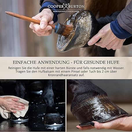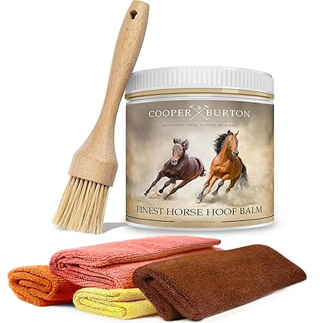 Sản phẩm COOPER & BURTON Hoof Balm for Horses | Hoof Care with Natural Oils for Healthy Hooves 500 ml | Protects Against Cracks | Intensive Care for Horses Hooves (Hoof Balm 500 ml + Brush + 4 x Microfibre đang được bán với giá ưu đãi là $21.8 tại nước Đức.