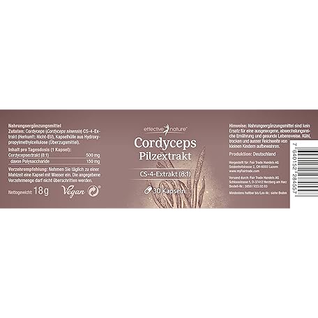 Sản phẩm Cordyceps Capsules High Dose with 500 mg Cordyceps Extract per Day - 30 Capsules - CS-4 Quality - Chinese Caterpillar Mushroom in a ratio of 8:1 đang được bán với giá ưu đãi là $18.8461 tại nước Đức.