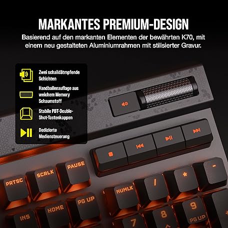Thông tin sản phẩm CORSAIR K70 MAX RGB Magnetic-Mechanical Wired Gaming Keyboard - MGX Adjustable Switches, SOCD and Rapid Trigger, PBT Double Shot Keycaps, Sound Absorption, 8000Hz, QWERTZ DE - Grey