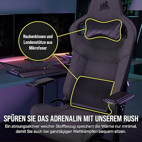 Sản phẩm Corsair T3 RUSH Fabric Gaming Chair (2023), Inspired by Motor Sports, Soft Fabric Cover, Detachable Neck Cushion and Memory Foam Lumbar Support, Anthracite đang được bán với giá ưu đãi là $336.9081 tại nước Đức.