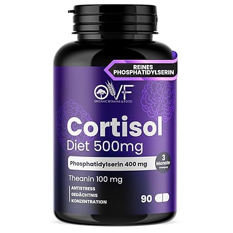 Cortisol Diet 500 mg Phosphatidylserine 400 mg + L-Theanine 100 mg 90 Capsules Cortisol Lower and Concentrate Cortisol Blocker Supports Memory and Concentration Gluten Free Made in Italy