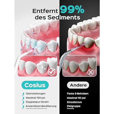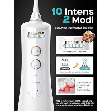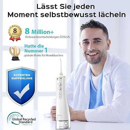 Sản phẩm COSLUS Wireless Oral Irrigator 2025 Upgraded Electric Tooth Cleaner: 10 Intensities & 300 ml Water Tank Portable Rechargeable Dental Shower Teeth Flosser Waterproof Oral Irrigator for Home Travel đang được bán với giá ưu đãi là $31.6754 tại nước Đức.