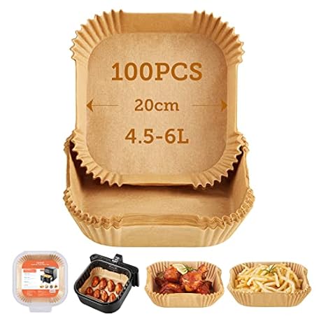 Thông tin sản phẩm Cosori Baking Paper for Hot Air Fryer XXL 4-7.3 L, Pack of 100 20 cm, Unbleached Airfryer Accessories, Non-Stick Disposable Trays, Parchment Paper, Compatible with Standard Hot Air Fryers